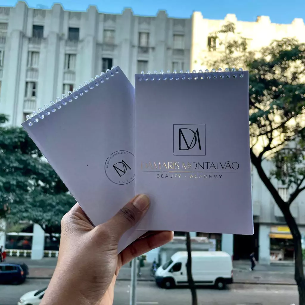 Miolo impresso em papel sulfite 75g com capa em papel matte de 180g com acabamento metalizado e finalizado com película de brilho